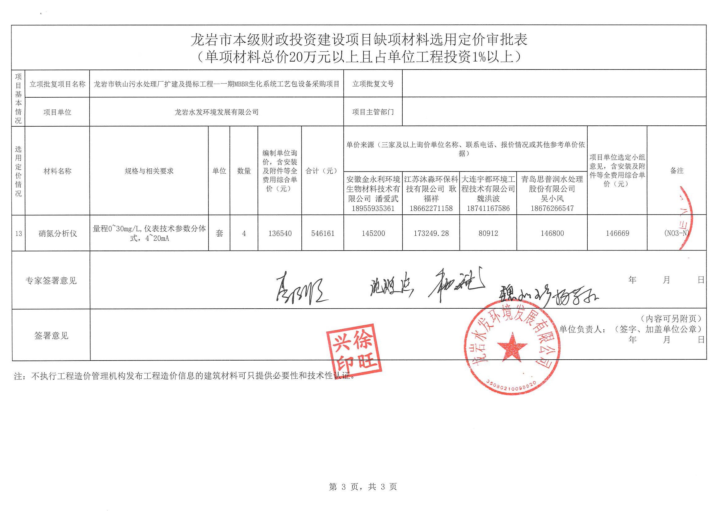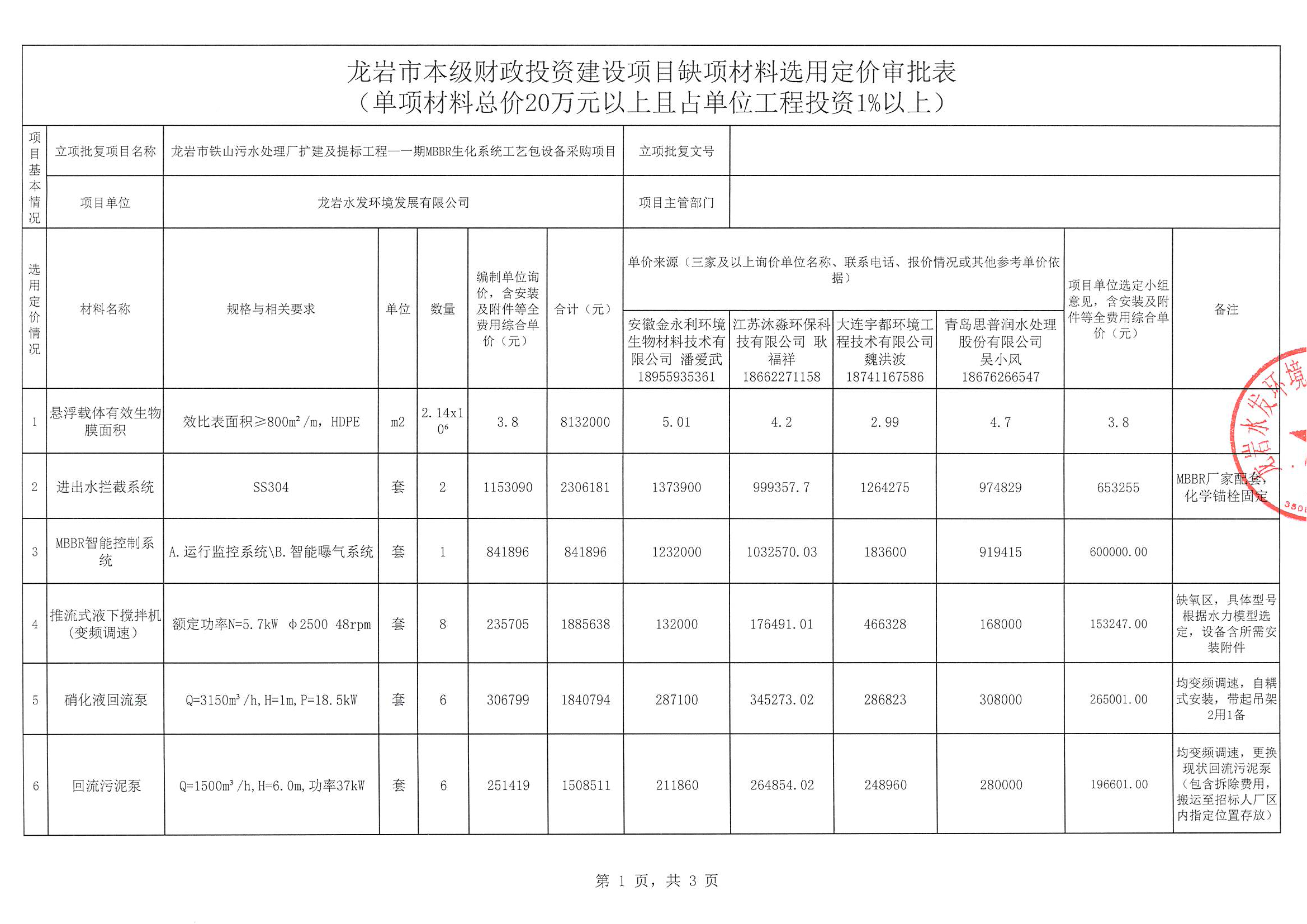 各有關(guān)單位如對(duì)上述缺項(xiàng)材料定價(jià)論證意見有異議,可于2024年2月2日前將書面文件提交至龍巖水發(fā)環(huán)境發(fā)展有限公司。(聯(lián)系人:邱建華 電話:18950839354)