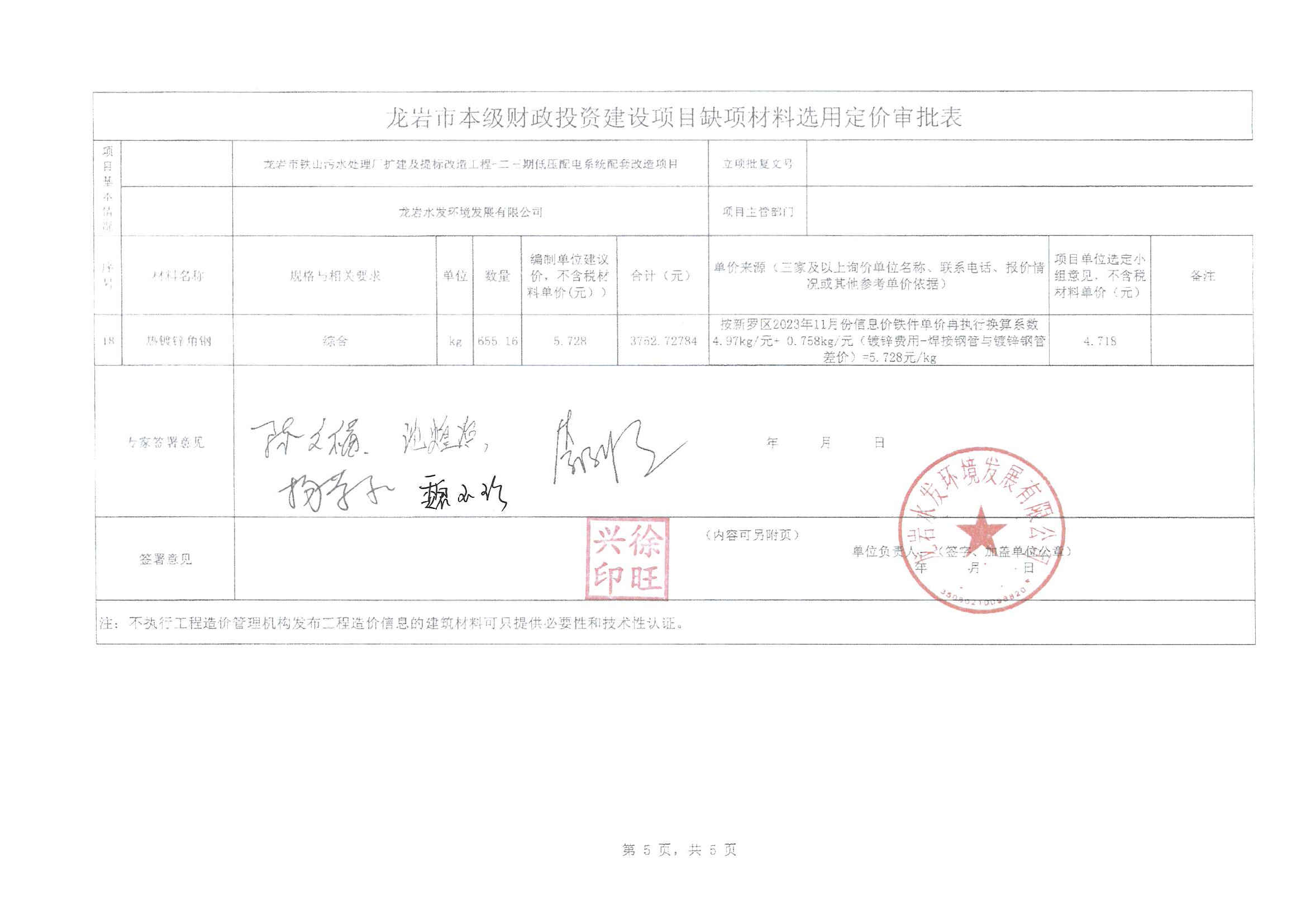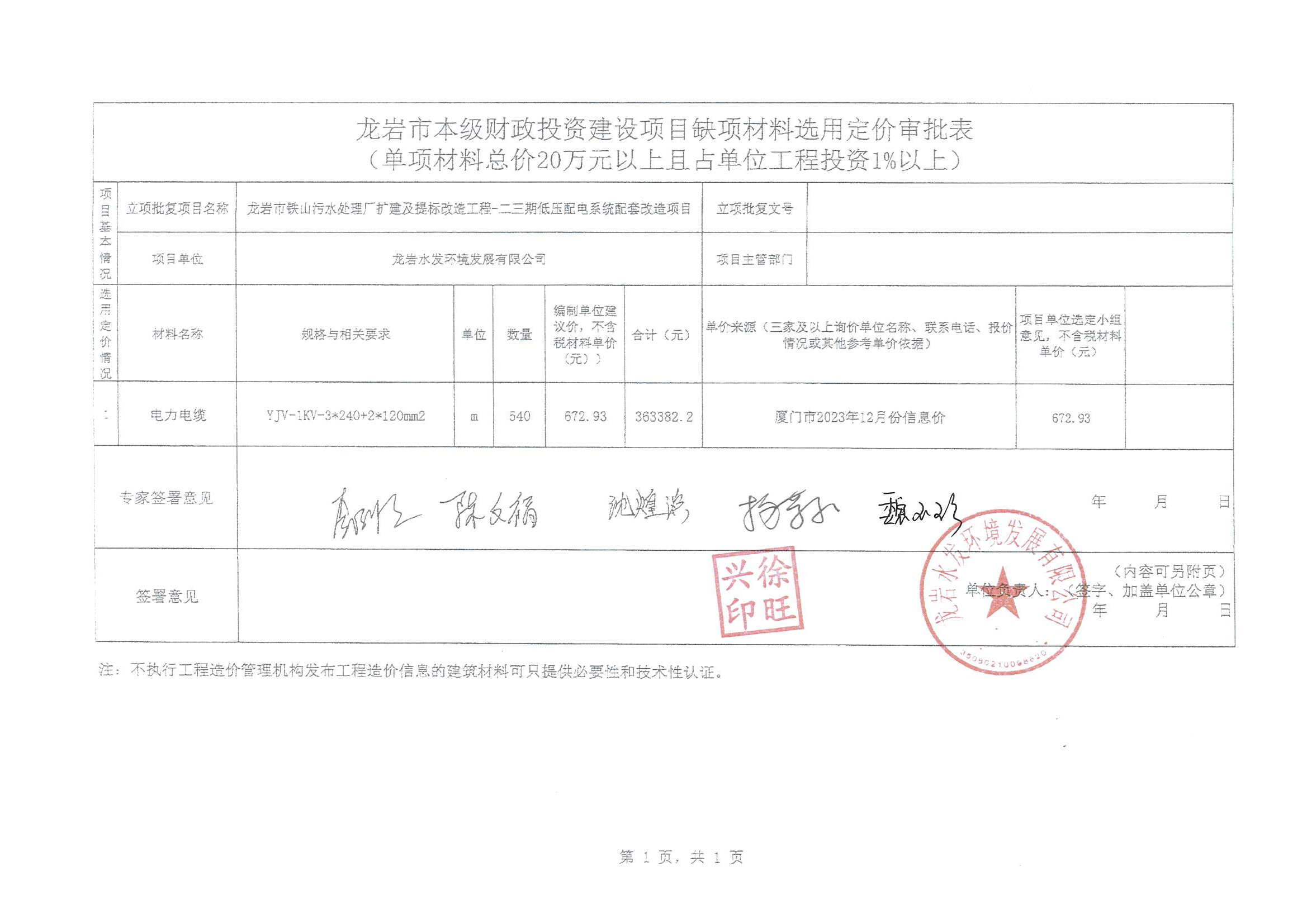 各有關(guān)單位如對上述缺項(xiàng)材料定價論證意見有異議,可于2024年1月7日前將書面文件提交至龍巖水發(fā)環(huán)境發(fā)展有限公司。(聯(lián)系人:邱建華 電話:18950839354)