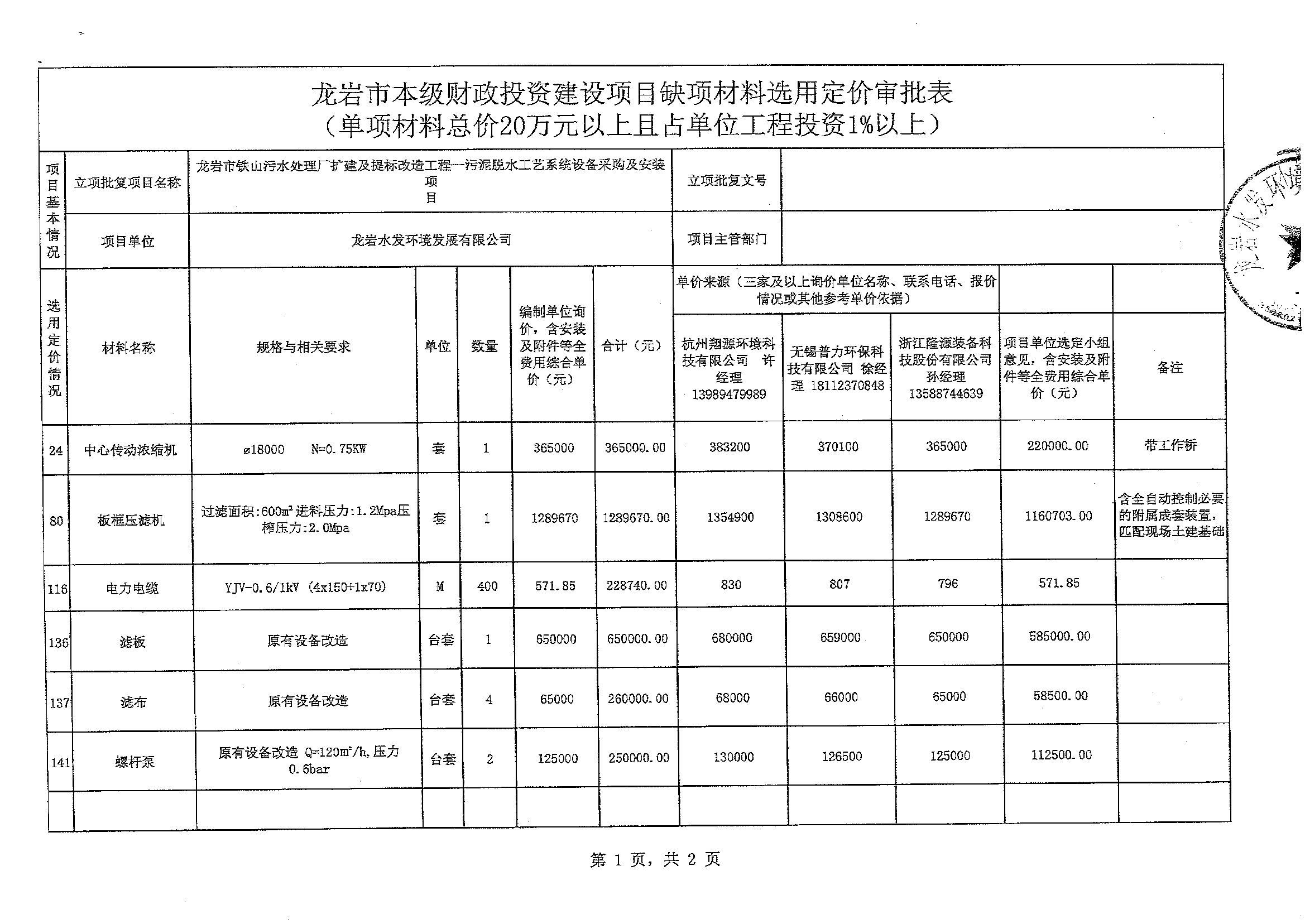 根據(jù)《龍巖市財政局 龍巖市發(fā)展和改革委員會 龍巖市住房和城鄉(xiāng)建設局關(guān)于深化龍巖市本級財政投資評審改革的實施意見》(龍財建〔2019〕62號)文件要求,現(xiàn)將龍巖市鐵山污水處理廠擴建及提標改造工程-污泥脫水工藝系統(tǒng)設備采購及安裝項目缺項材料補充定價公示(公示期:2023年12月15日-12月22日),具體內(nèi)容詳見附件。